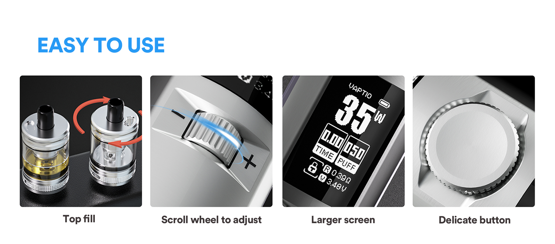 Coil Resistance: 0.4/ 1.0ohm Mesh | Max Power:5-50W |