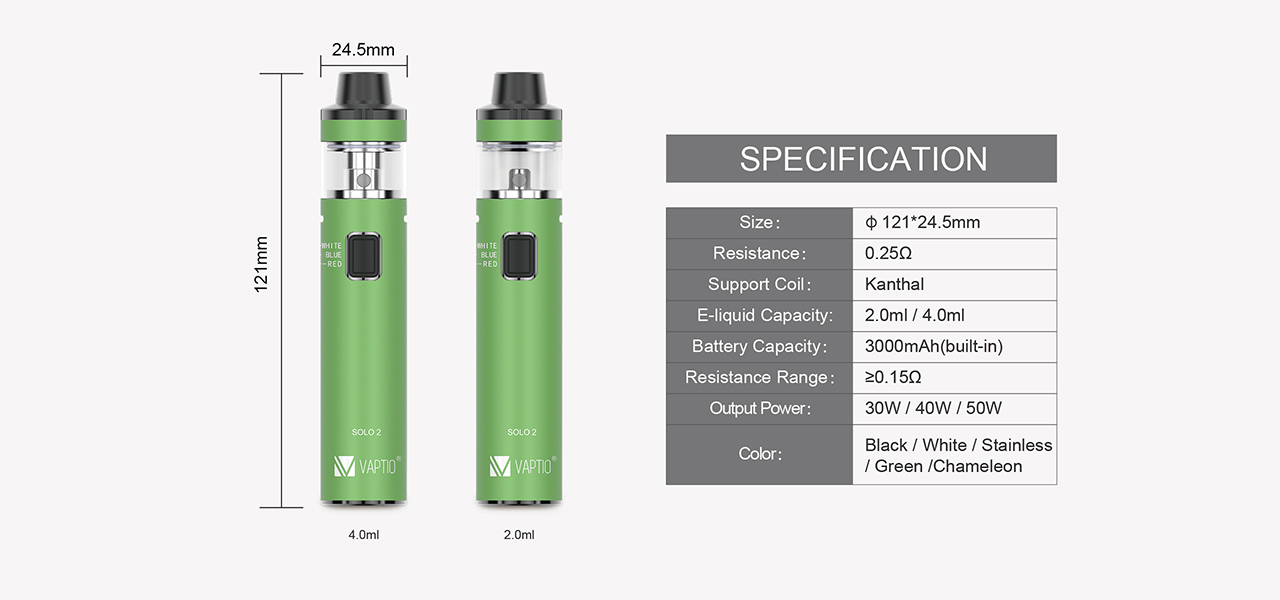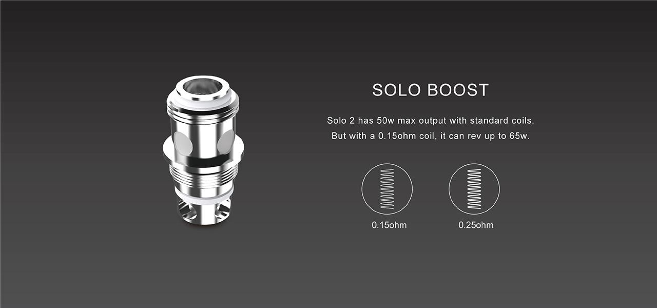 Solo 2 Kit has 50W output with standard coils, the wattage can be adjusted among 50W, 40W and 30W. With a big battery capacity of 3000mAh, your vaping experience during travel can last a long time without charging frequently. The Solo 2 Kit has one button design with a compact size, which is easy to use and convenient to carry during travel. There is top filling design for the tank for a easier refilling.