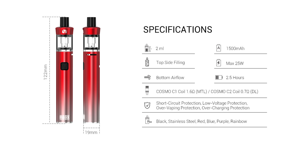 Resistance: 0.7Ω / 1.6Ω | Tank Capacity: 2.0ml |